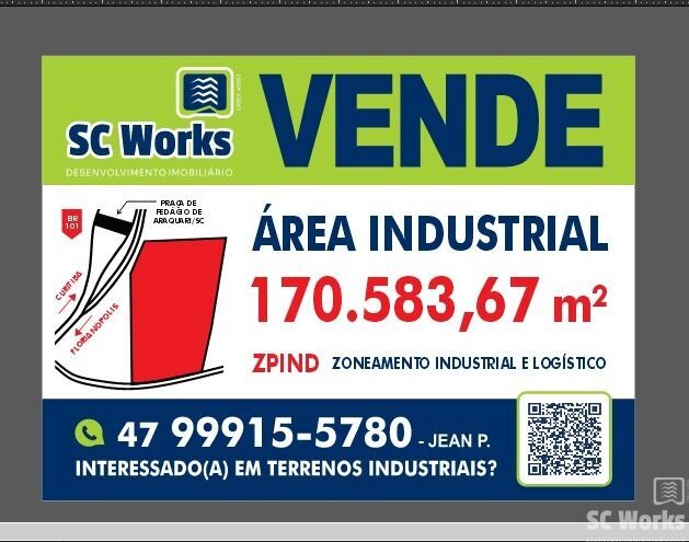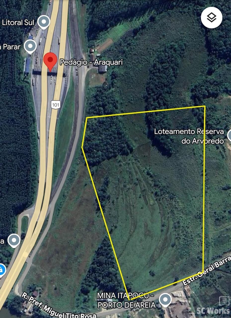 TERRENO, situado no bairro Morro Grande, distrito de Itapocú em Araquari/SC, medindo 119 metros de frente para a Rodovia BR-101 e 263 metros para Estrada Geral da Barra do Itapocú, plano, 85% suprimido de vegetação, contendo área total de 170.583,67 m².