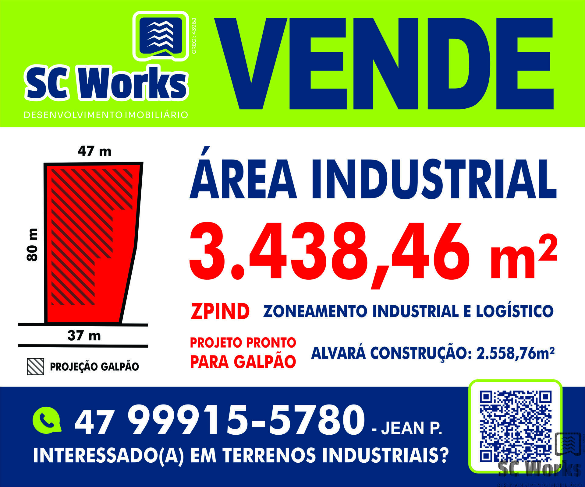 Possui Alvará de Construção para Galpão com área de 2.558,76m²